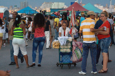 I went through without any problems. Some people do, however, get stopped by the police, who search them for sharp objects, including any glass container. Already on the carnival grounds, I am somewhat surprised by how small the area is, bearing in mind that, counting the visitors from other provinces, there are nearly three million people in Havana. I walked for an hour, down about ten blocks, until I reached the Maine monument, the end of the area devoted to the festivities.