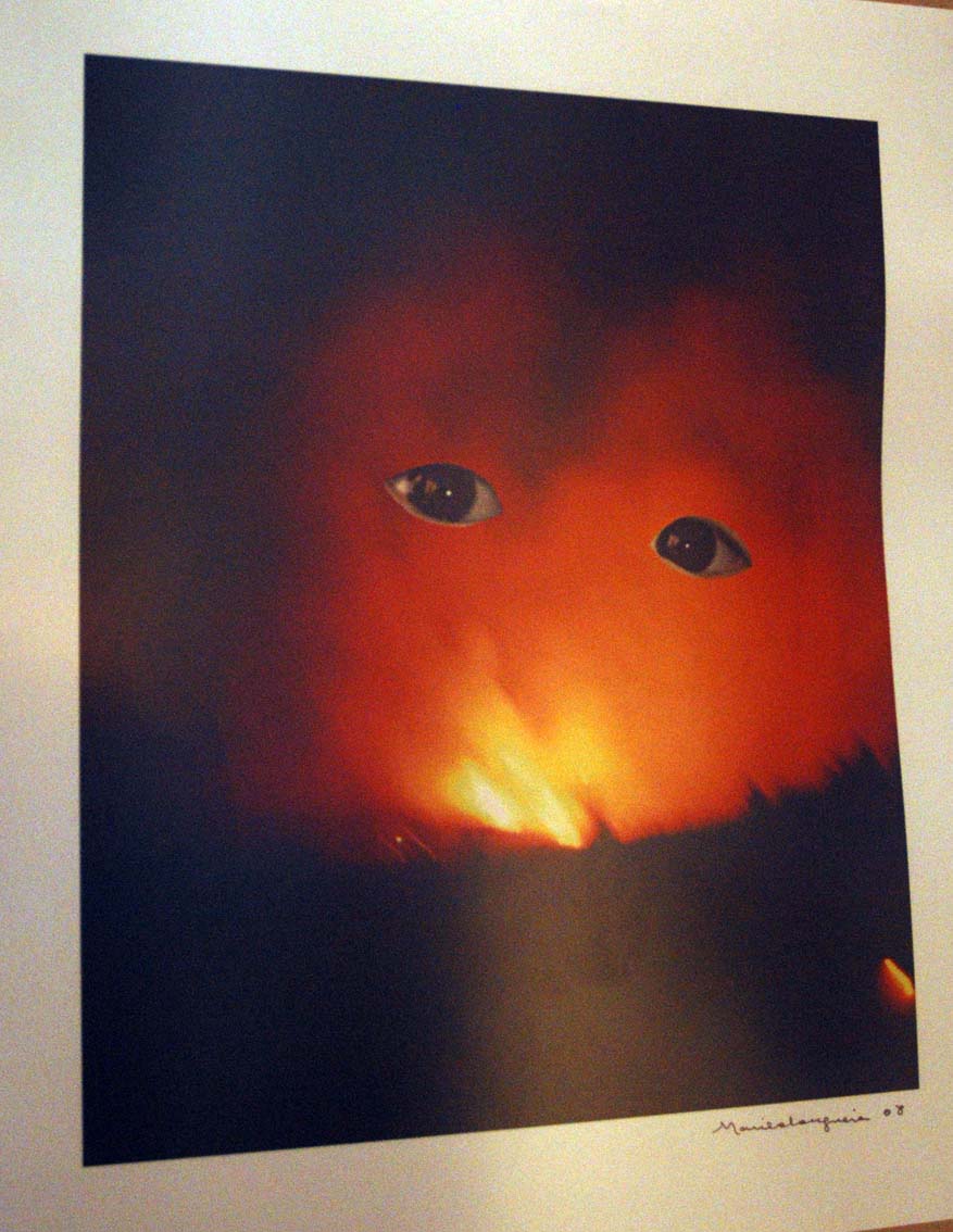 “This piece is fantastic. It’s of a butterfly. Look at its look… there under its wings. And the fire is truly captivating. Those eyes seem be jumping out of the flames at the same time. One might think they were there before, so they aren’t surprised by the fire.” Nancy shares her opinions and at the same time comments that “the artist is also very good person, very pleasant.”