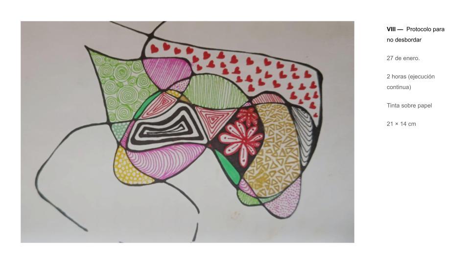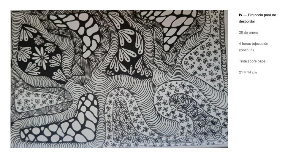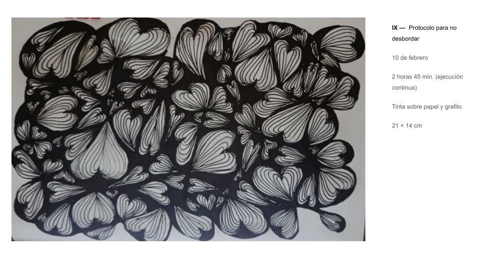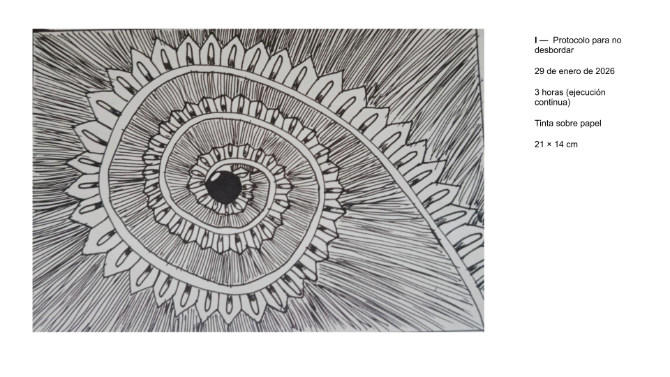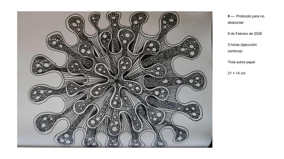 The sequence proposes a progression that moves from the concentrated nucleus to saturation, passing through moments of adaptation and vulnerability. The work understands drawing as an intimate space of resistance, where repetition is transformed into support and silence into structure.