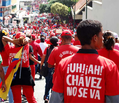 HAVANA TIMES — Once again a sea of red took over the streets around the presidential palace in Caracas as supporters of President Hugo Chavez rallied on Thursday to show their support for their ailing leader and pledging allegiance to his Bolivarian Revolution.