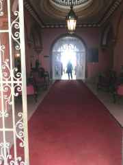 Its sturdy structure features elements of neoclassical style, with beautiful stained glass windows, ironwork, and fine wood railings on the balconies. It’s topped with red tiles. The furniture is elegant, and the main halls — Gold, Red, Green, and Violet — stand out, with the Violet room featuring a marble stove. The Green room has a glass window that looks out onto a courtyard. Outside, there are small tables where people can chat over drinks and enjoy the ocean view.